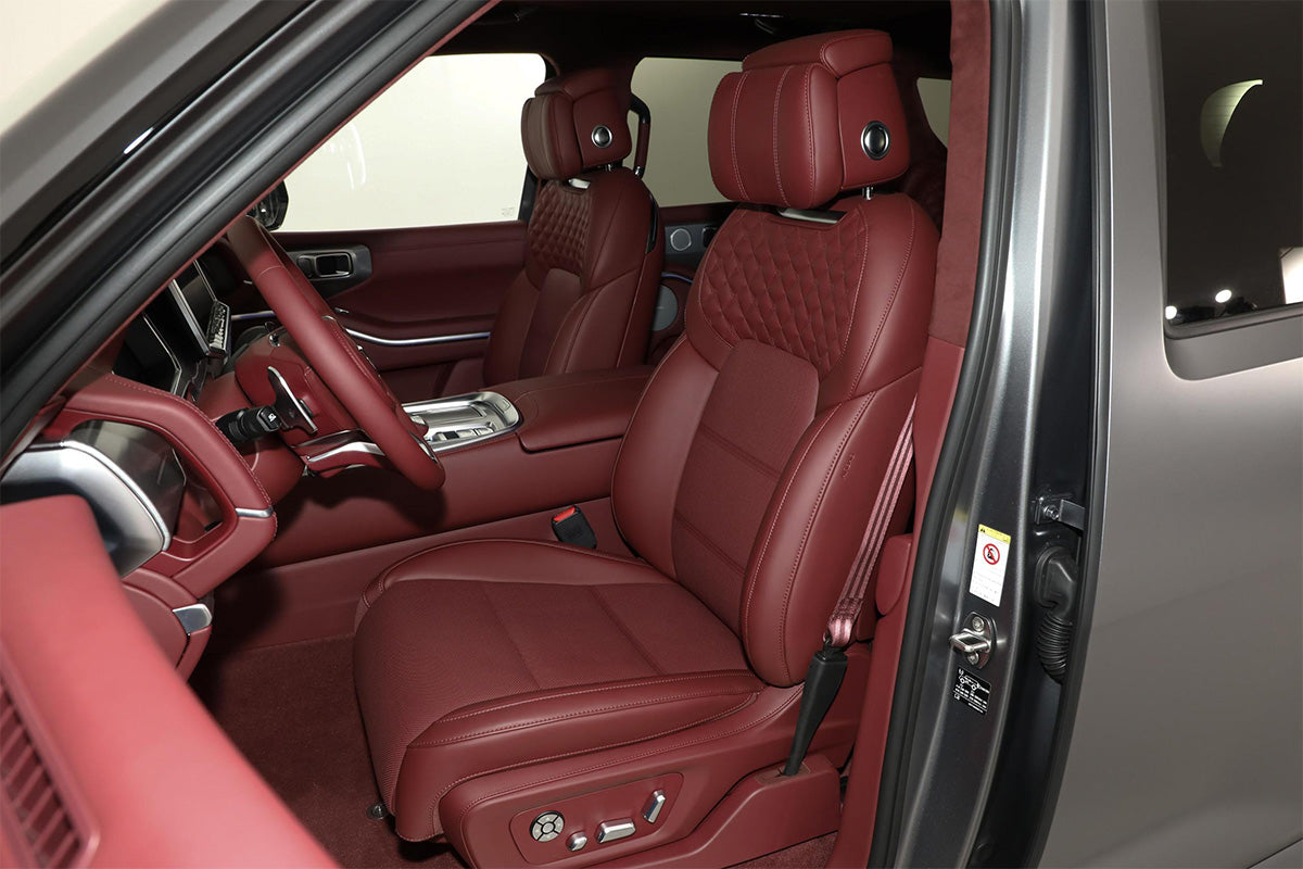 Inside, the cabin offers a stark contrast with its opulent, quiet sanctuary. It features premium diamond-quilted seats, extensive use of suede and other high-end materials, and a sophisticated digital interface, creating a first-class lounge experience even in the most rugged environments.