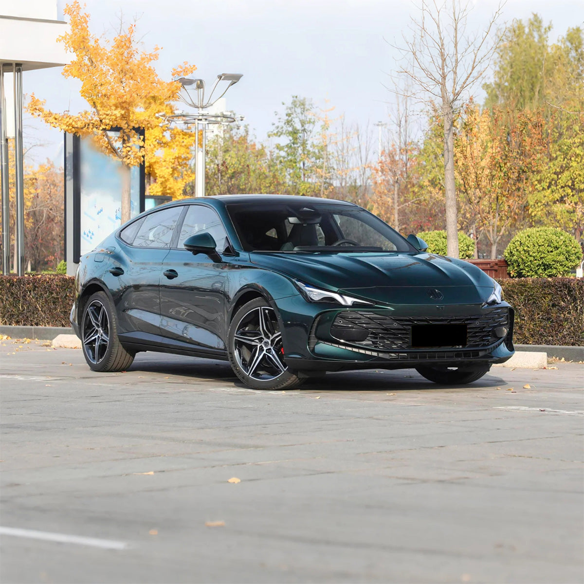 The MG7 is a stunning four-door coupe that marks MG's bold return to the sports sedan segment. It features a sleek, fastback silhouette with a dramatic sloping roofline, frameless doors, and an active rear spoiler, creating an undeniably athletic and elegant presence.